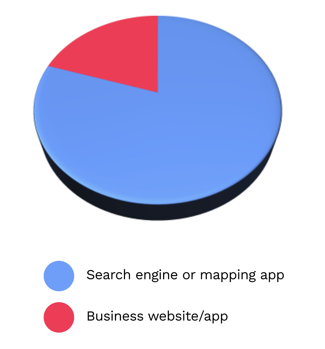 According to a Nielsen Norman Group UX research study,* 80% of users went directly to a search engine or dedicated mapping app (mainly Google Maps) when they asked them to find a nearby location for their personal bank, while the remaining 20% navigated directly to their bank’s website or app.